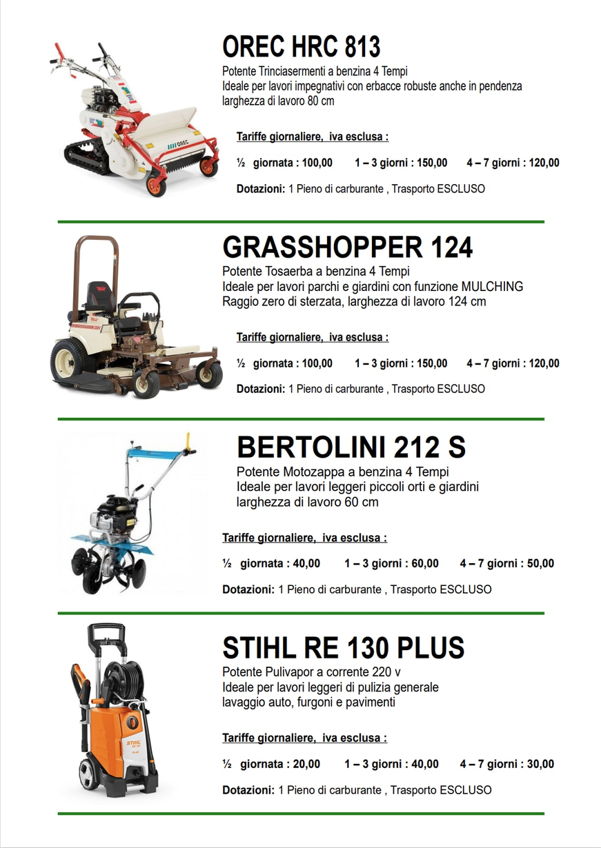 Il vivaio Il Petalo Rosa è specializzato nel noleggio e vendita di attrezzature e macchine sia per l'agricoltura che per il giardinaggio e miniescavatori.